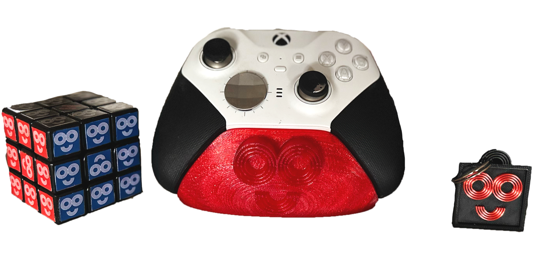 Good Game Rubik’s Cube, Xbox Controller Stand, and keychain.